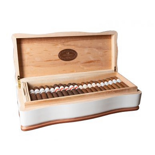 Doprajte si eleganciu a kvalitu s humidorom 1880 z prvotriedneho dreva, ktorý perfektne doplní váš domov – či už v klasickom alebo modernom štýle. Vo vnútri nájdete 40 exkluzívnych cigár Doble Robusto, po 10 kusov z každého druhu: Claro, Colorado, Oscuro a Maduro, pripravených potešiť každého milovníka cigár.