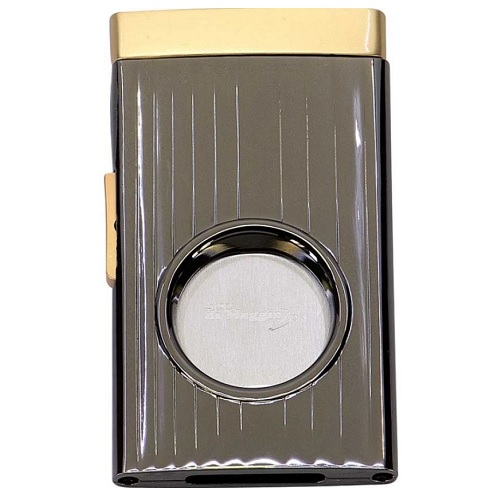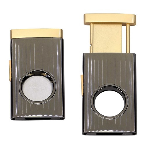 Elegantný a praktický cigarový orezávač, ktorý kombinuje štýl s funkčnosťou. Vyrobený z kvalitného kovu v modernom gunmetal odtieni s luxusnými zlatými detailmi, je ideálnym doplnkom pre každého milovníka cigar.