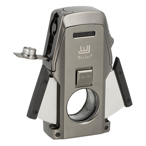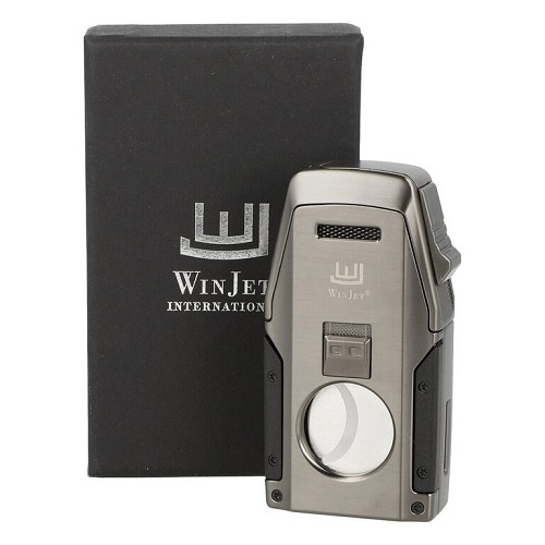 Winjet Mega Cigar je viac než len zapaľovač – je to kompletné cigarové príslušenstvo stvorené pre náročných. Masívne kovové telo v elegantnom gunmetal prevedení s pololesklým povrchom pôsobí robustne a luxusne zároveň. Po odklopení krytu a stlačení tlačidla zapália dve výkonné jet trysky vašu cigaru silným a stabilným plameňom, ktorý nepodľahne ani vetru.