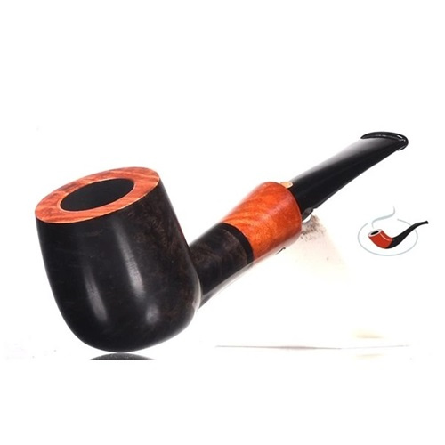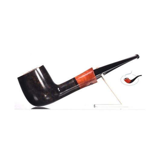 Tmavý hladký povrch briáru dopĺňa široký akcent na drieku v teplom červenkastom odtieni, pripomínajúcom západ slnka nad africkou krajinou. Fajka pôsobí moderne, no zároveň si zachováva remeselný charakter. Akrylový náustok zdobí guľovitý briárový prvok, symbol značky White Elephant – „one world“, teda myšlienka jednoty a harmónie.