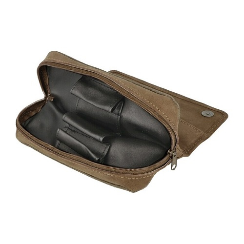 Praktické a štýlové kožené puzdro na dve fajky z brúsenej kože v hnedej farbe je nevyhnutným doplnkom pre každého fajčiara. Vďaka svojmu precíznemu spracovaniu chráni vaše fajky pred poškodením a zároveň poskytuje priestor pre všetky potrebné doplnky.
