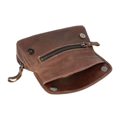Praktické kožené puzdro na 1 fajku so zipsom. Precízne spracované puzdro na 1 fajku Crocco vyrobené z kvalitnej koži je v tmavohnedom odtieni. Kožený povrch s krokodílím vzorom je v polomatnom prevedení. Po odklopení hornej strany uzatvorenej na magnet nájdeme dve vrecká, z toho jedno je uzatvárateľné zipsom. Tieto vrecká využijeme napríklad na tabak a ďalšie potrebné fajkové príslušenstvo. Priestor pre jednu fajku je na spodnej strane a zasahuje do pravého boku. Fajka sa zasúva náustkom do puzdra, hlava fajky ostáva v časti so zipsom. Priestor pre fajku je bezpečne uzatvorený kvalitným zipsom. Puzdro nielen ochráni fajku, ale poskytne aj priestor pre všetko potrebné pre fajčenie fajky.