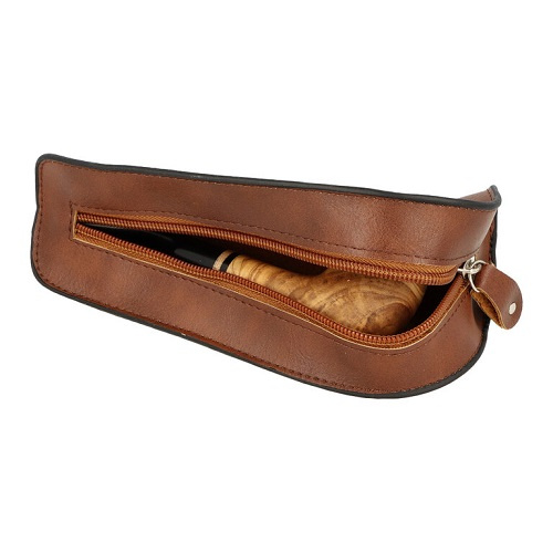 Koženkové puzdro na 1 fajku so zispsom. Praktické puzdro v tmavohnedom prevedení je vyrobené z veľmi kvalitnej koženky. Hladký povrch puzdra je v polomatnom vyhotovení. Po rozopnutí puzdra si do neho pohodlne vložíte obľúbenú fajku. Tým, že fajku budete prenášať v zatvorenom puzdre, predídete tak jej poškodeniu a predĺžite jej vašu spoločnú cestu. Výrobok je dodávaný v kartónovej krabičke. Ilustračná fajka nie je súčasťou.