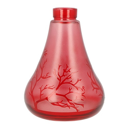 Jej telo v matnej červenej farbe harmonizuje s elegantnou, zdobenou sklenenou vázu, ktorá dodáva celému dizajnu moderný a luxusný vzhľad. Vodná fajka sa jednoducho zostavuje – telo sa nasadzuje na vázu pomocou gumového tesnenia, ktoré zabezpečuje pevné a vzduchotesné spojenie.