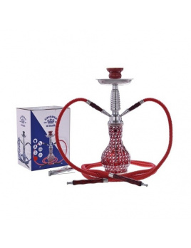 Veľmi kvalitne spracovaná vodná fajka strednej veľkosti s dvomi hadicami. Zaujímavo spracovaná váza fajky v červenom odtieni a ozdobným spracovaním, hadice sú v červenom vyhotovení rovnako ako keramická korunka.